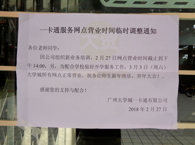 | 广工校内一卡通网点服务27号和3号营业时间调整和安排说明 | ||||||