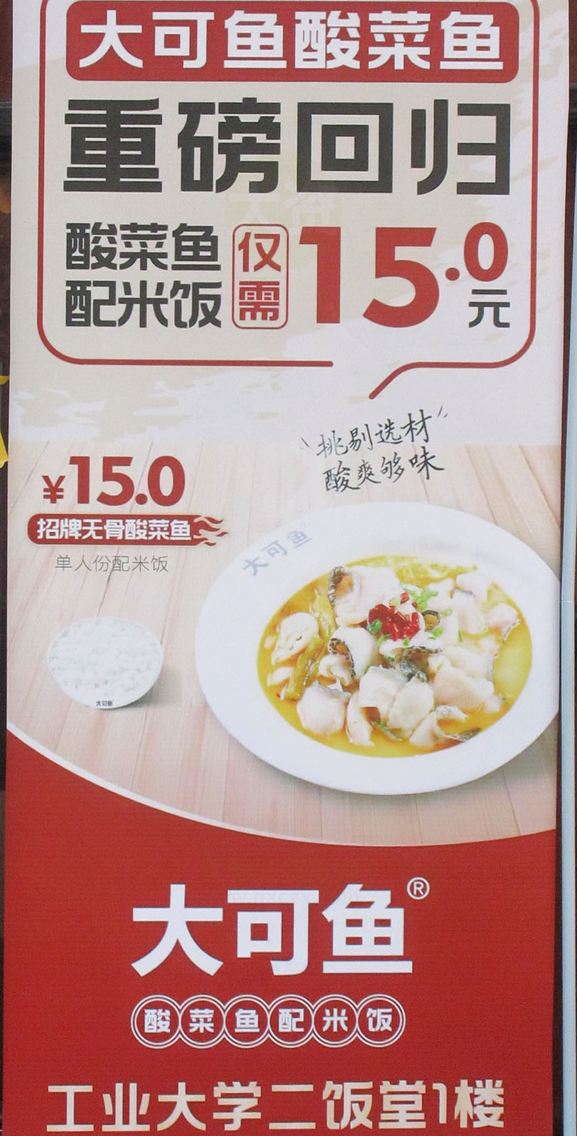 | 广工二饭一楼 大可鱼酸菜鱼重磅回归 酸菜鱼配米饭仅需15元 | ||||||
