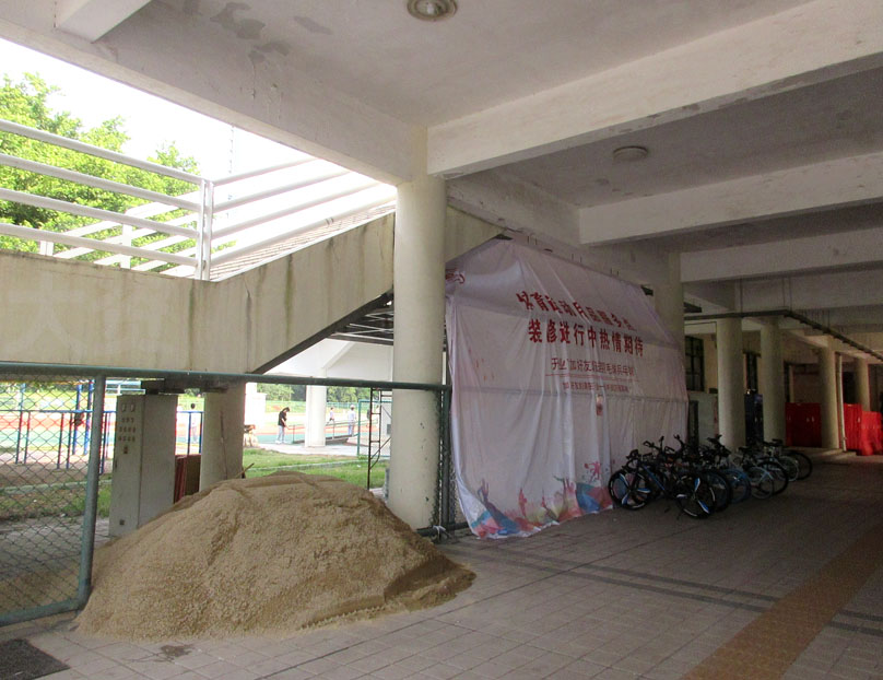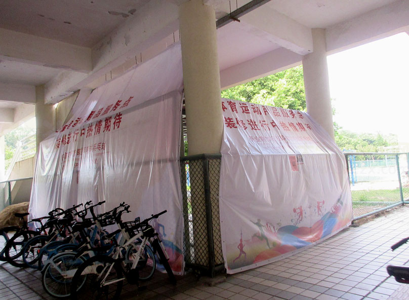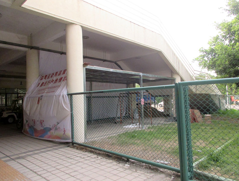 | 中心田径场西北角,看台北侧后上二楼楼梯下 这里居然好像在装修一个体育用品店还是什么服务中心 | ||||||