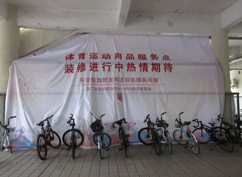 中心田径场西北角,看台北侧后上二楼楼梯下 这里居然好像在装修一个体育用品店还是什么服务中心,应该也是卖的吧,反正它都在装修中