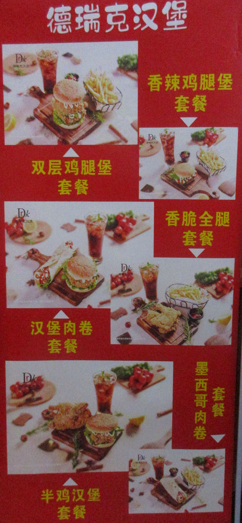 | 广工西区三饭二楼东北角楼梯上左转 德瑞克汉堡 最新各种系列套餐搭配图看 | ||||||