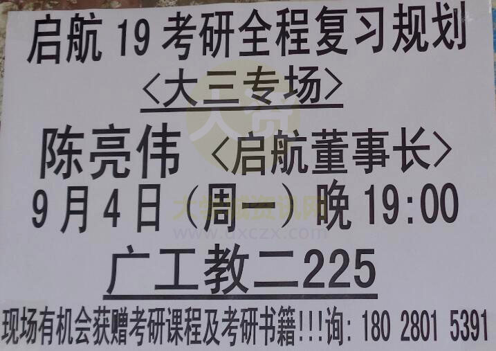 | 启航19考研全程复习规划(大三专场)9.4周一晚教二225 | ||||||