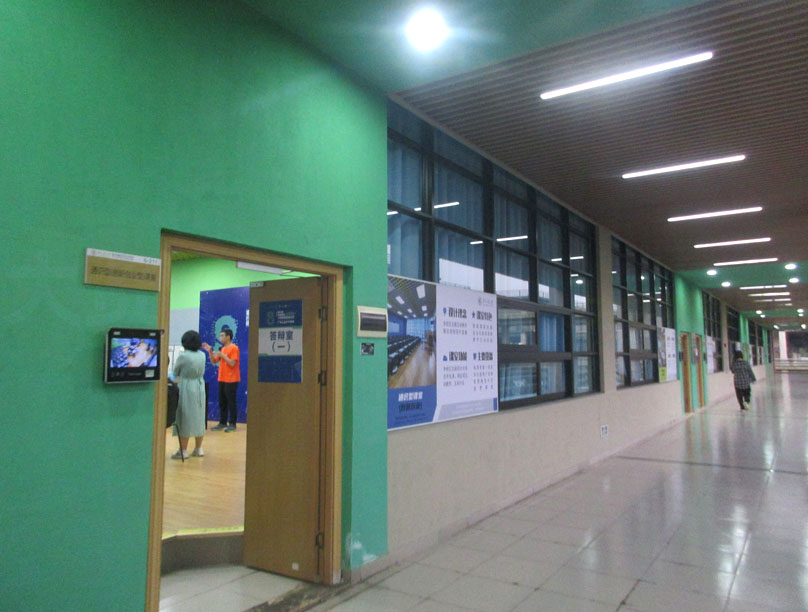比赛是在教学区教六南座二楼进行,今天已经有参赛队伍在彩排和练场了