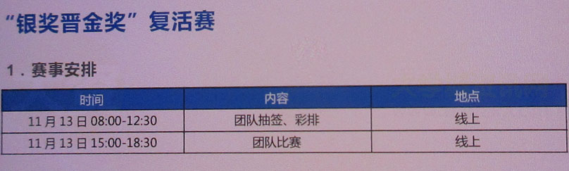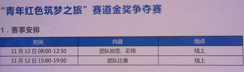 赛程上,明天下午是高教主赛道主赛,后天是红色之旅,第三天是银奖晋金奖复活赛