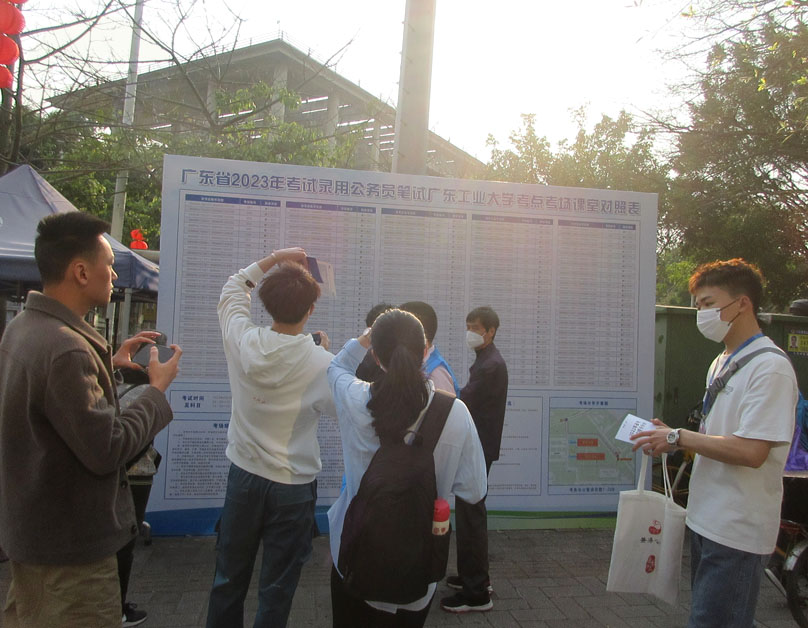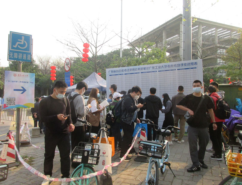 | 大学城广工明天上中午将作为考场进行广东省2023年公务员录用考试 教学区东门外现场踩点看考场试室等的考生还是比较有的 | ||||||