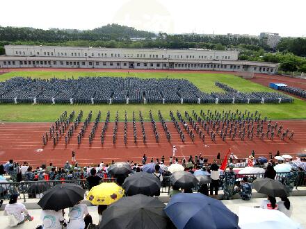 广大2017级新生军训阅兵总结表彰汇演今上午在北区田径场进行