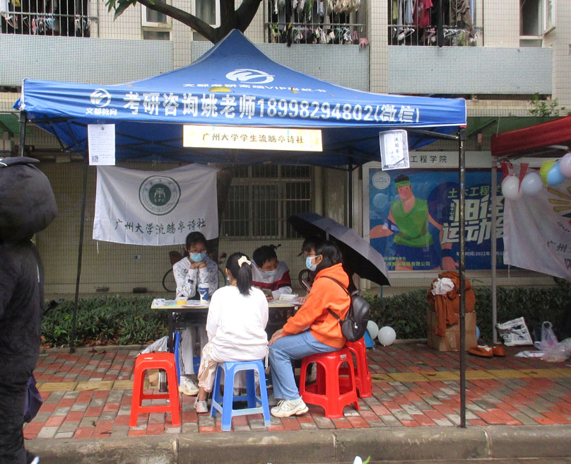 | 广大2022百团招新 摊位现场之阳光义工团&流觞亭诗社 具体位置兰苑2栋南侧辅道中间 | ||||||