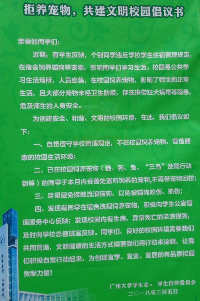 开学之际,学校以校学生会和自律委员会的名义,发出倡议通告,委婉告诉大家不能再继续带各种宠物回宿舍和在宿舍继续饲养各种宠物