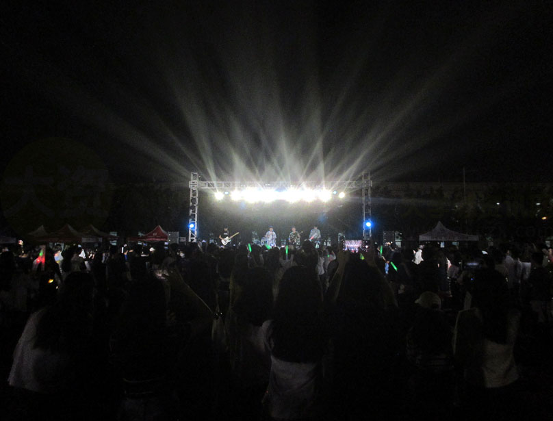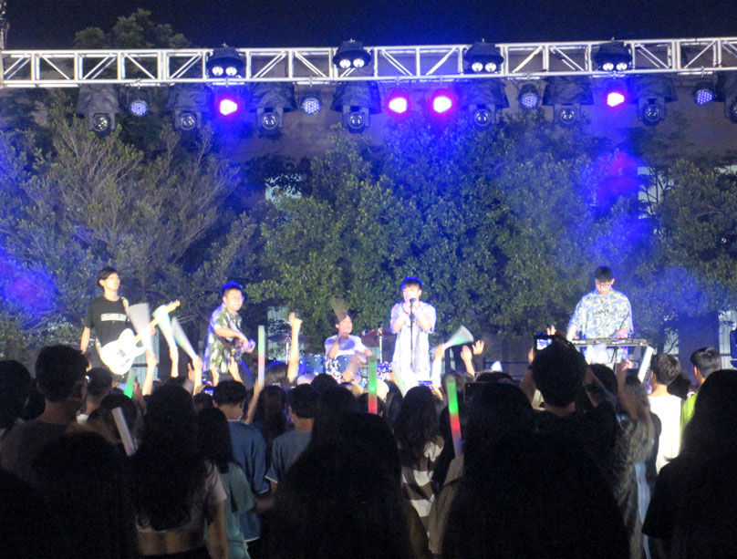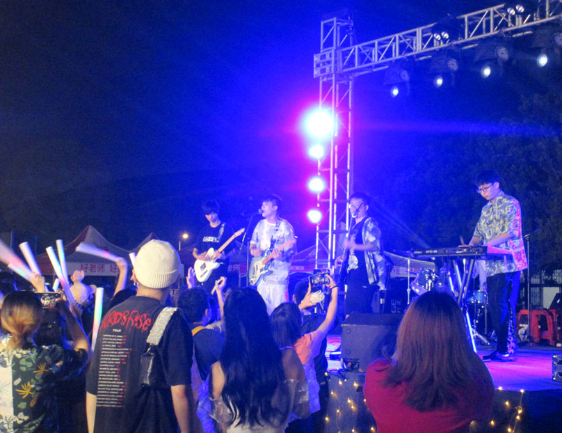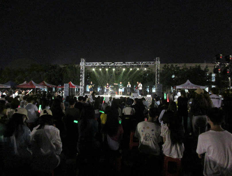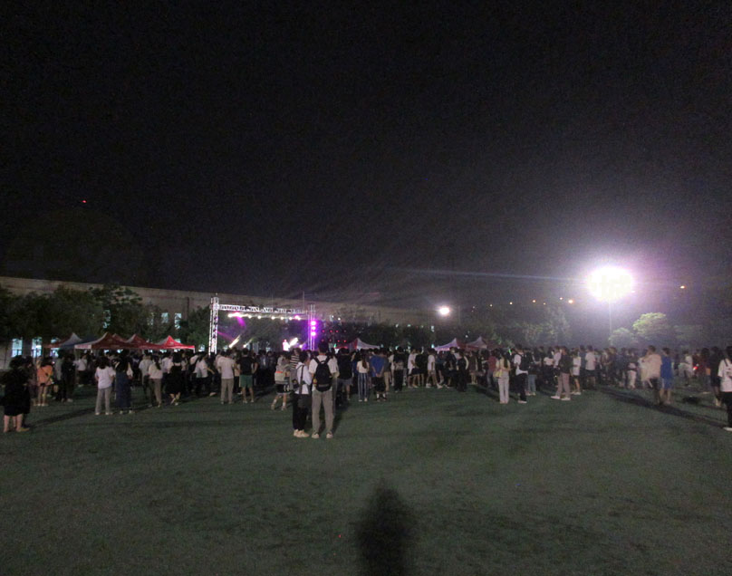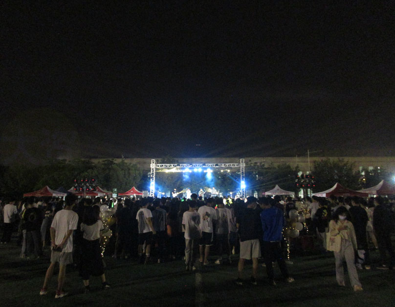 红棉音乐会今晚在教学区北(人工草)田径场上演,北区人工草田径场迎来了久违的热闹与欢歌笑语,美妙音乐旋律烘托轻松愉悦的现场气氛