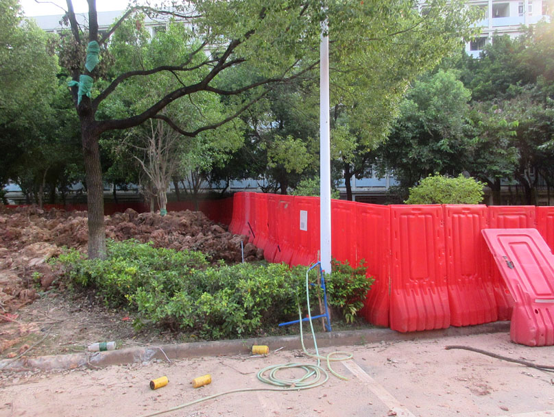 生活区菊苑4栋东北部&临环校路部分在进行围蔽施工 具体还不知是 又是类似前段时间教学区的室外管线挖掘?