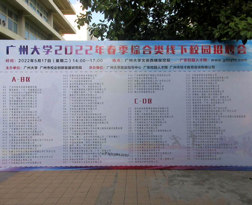 广州大学2022春季综合类线下校园招聘会预告 时间:2022年5月17日(星期二)14:00-17:00 地点:广州大学教学区文俊西楼架空层