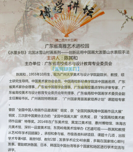 | 博学讲坛:创新运用中国画大泼墨山水表现手法 主讲人:陈其和 | ||||||