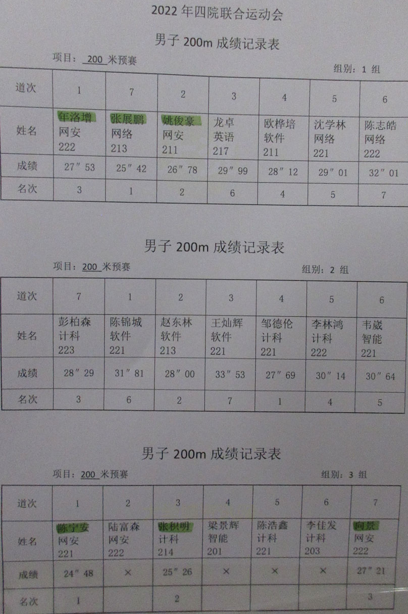 2022.10.22广大四院联合运动会 男子200米预赛(5组)成绩记录表