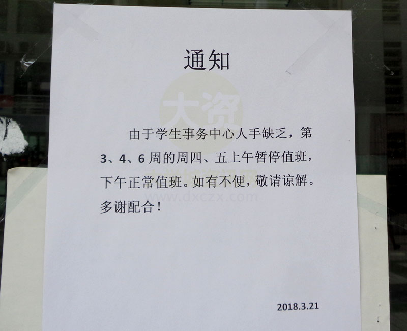 | 学生事务中心第3、4、6周周四、周五上午暂停值班通知 | ||||||