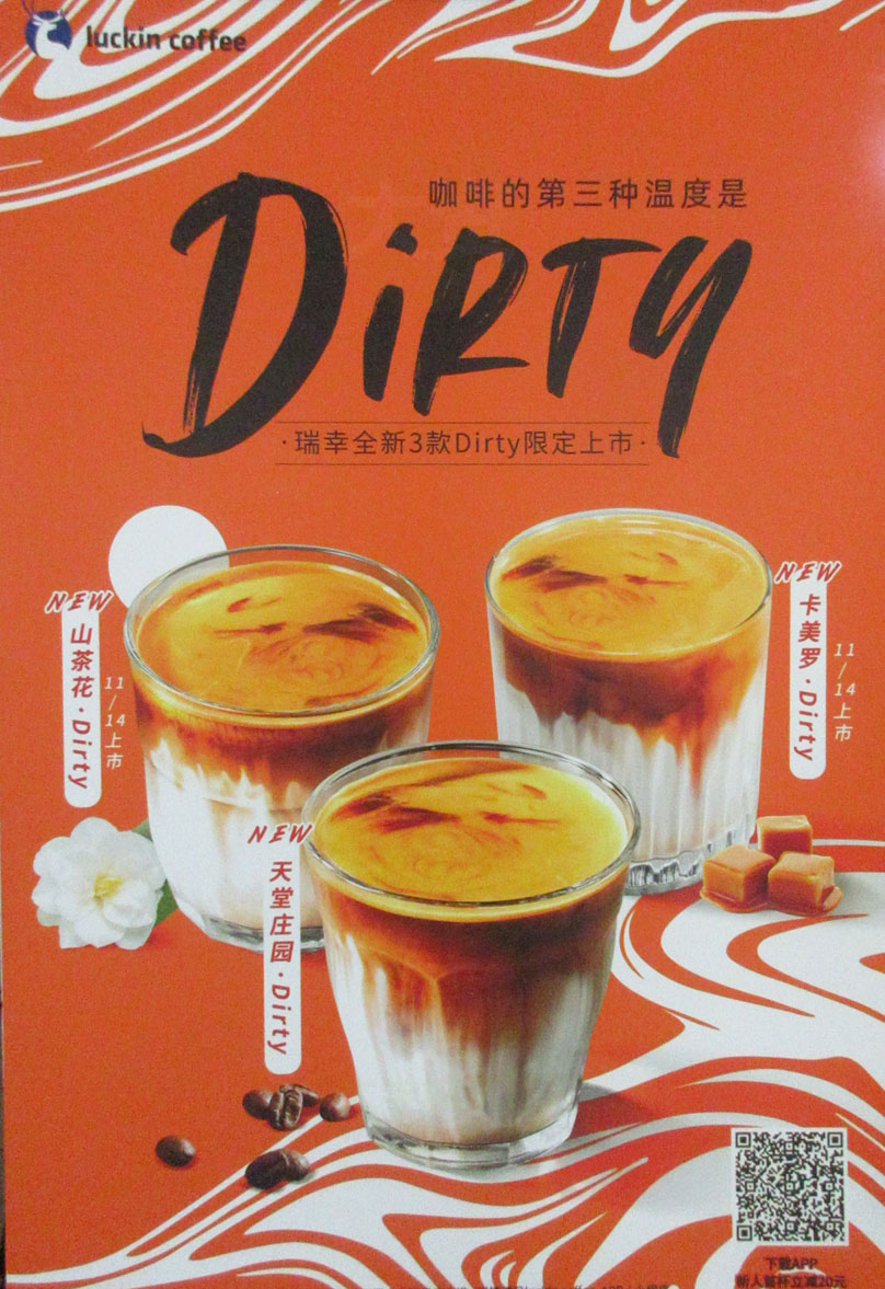广中医一饭三楼 瑞幸咖啡全新3款Dirty限定上市11.11-11.14 山茶花、卡美罗、天堂庄园