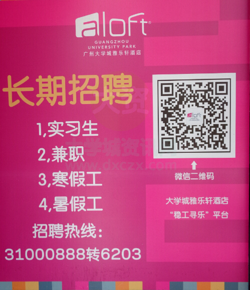 广州大学城雅乐轩酒店长期招聘实习生、兼职、暑假工、寒假工