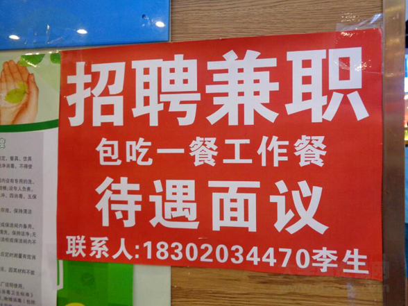 新天地三楼饮食区为食牛招聘兼职 包吃一餐工作餐,待遇面议,联系人:18302034470李生