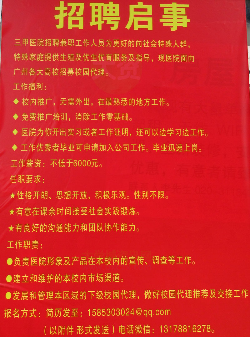 三甲医院招聘兼职工作人员-现医院面向广州各大高校招募校园代理(此资讯完全真实性尚未确定)