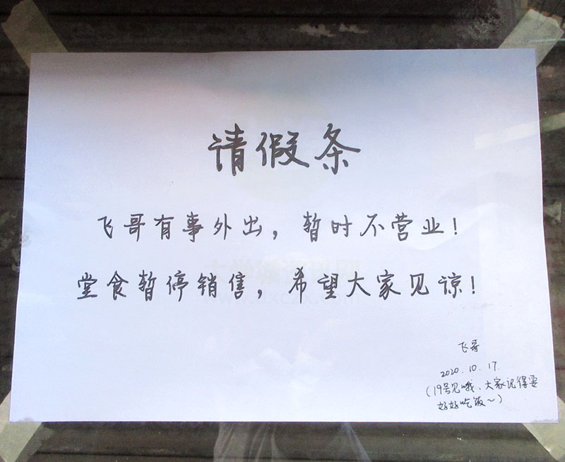 | 西社大街南-中华炒饭2020年10月18号不营业通告 | ||||||