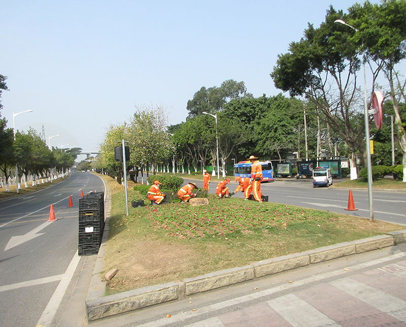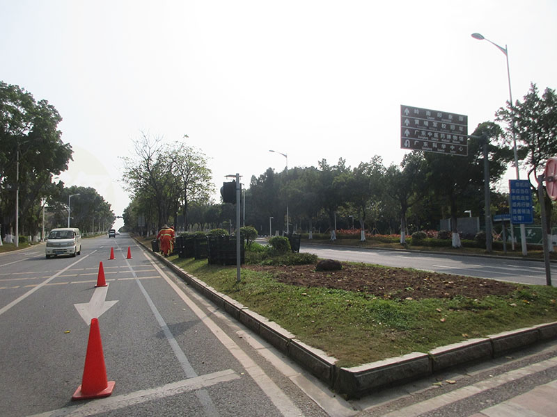 | 南亭牌坊对出外环路中绿植隔带又在栽种新的盆景花草 | ||||||