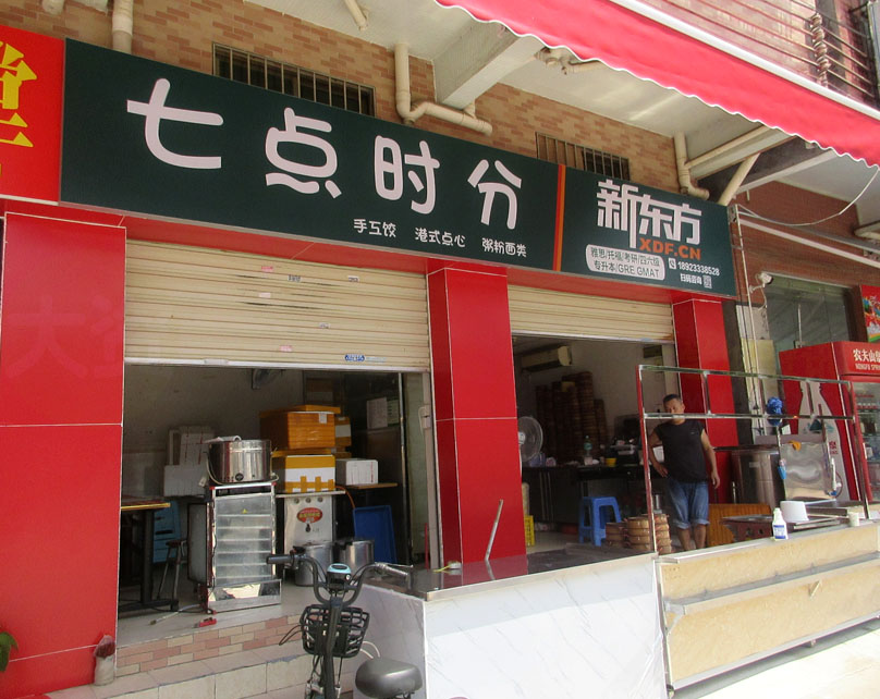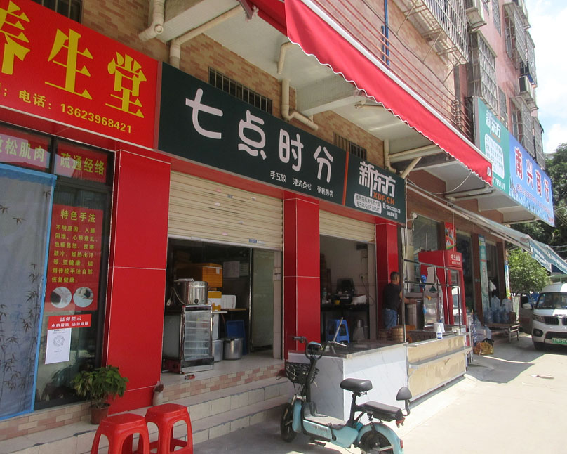 下朗大街南 这家早餐店是新加了个全新的招牌还是换取了个新店名(七点时分);好像平时这里就是一家早餐早点饺子之类的店,不过没怎么直接在这店门前摆卖,现在是有新合作或新加入?看着是这里店门前会跟过往不一样,会店前摆卖,明显化早餐店形态;即使不是新店,看着也是店面外观有所升级优化改善的