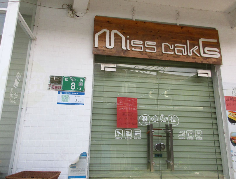 | 南商街一号楼背后-MISS CAKE汉堡蛋糕 贴示说休息三天 | ||||||