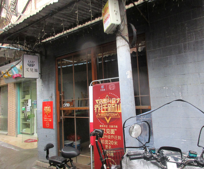 西社大街中 之前原格爵丝在装修的店面 原来是又见面,不远处的旧店已搬过这边,目前已新店开业,不过说改名叫烤铺,又见面不挺好吗,改后着重突出有烧烤类供应?
