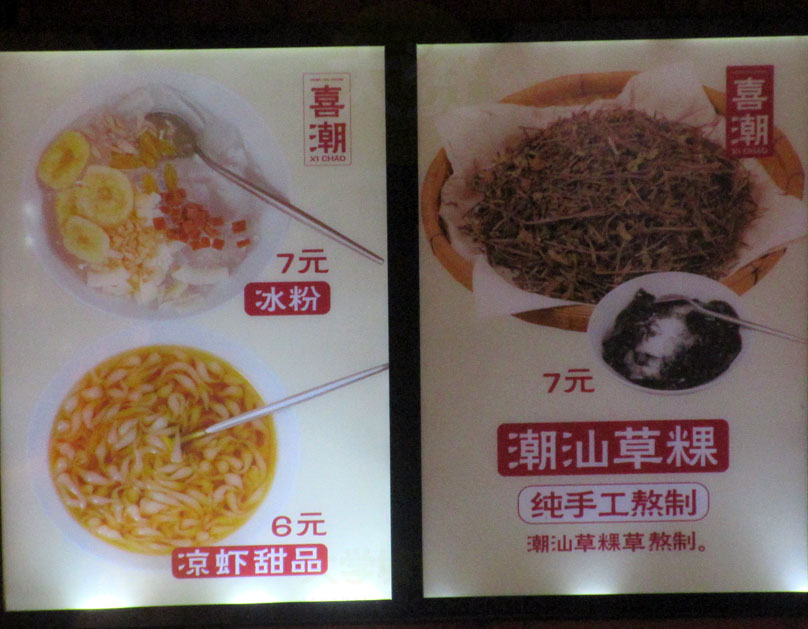 有冰粉、凉虾甜品,还有纯手工熬制的潮汕草粿