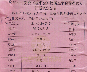 南亭村村委会(理事会)换届选举自荐参选人计票认定公告