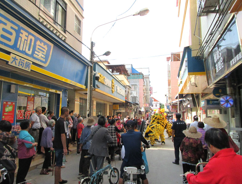 揭牌仪式后,舞狮助兴,气氛喜庆,不少街坊围观看热闹 |