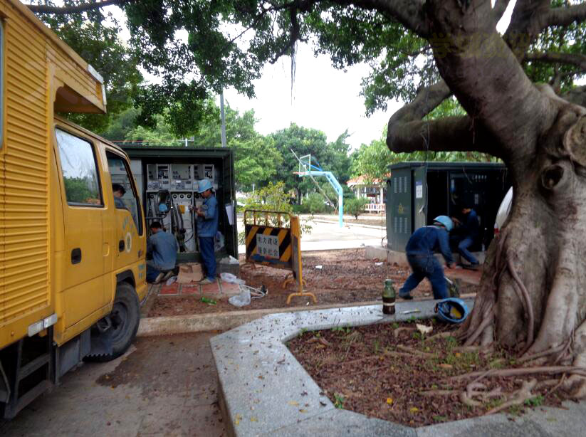 | 电工正在调配or检修篮球场旁新建变电箱 | ||||||