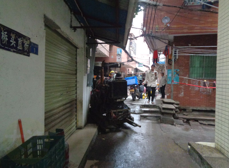 | 桥头直街桥头处段有打桩作业机正在推进深入某街巷内 | ||||||