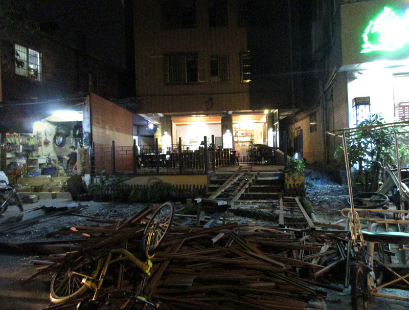 | 南亭北路中-山城鸡公煲-晚上-店前搭架遮棚-已似全部拆除 | ||||||