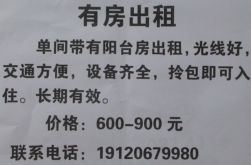 | 单间带有阳台房出租,光线好,交通方便,设备齐全,拎包即可入住 价格600-900元 | ||||||