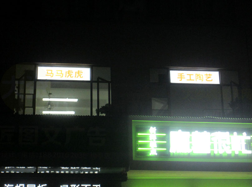 南亭村大街北段中 与润声书店同二层的西侧 好像开了家手工陶艺店?名叫马马虎虎?该店位前几天看到还是在招租的,现在这么快就已招牌亮灯了
