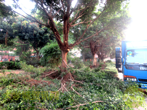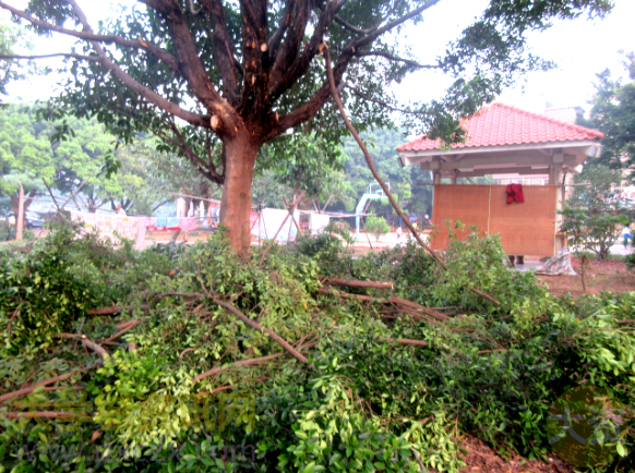 南亭村村心公园树木削枝干,有催使往高生长和增扩视野和安全美观的意思,三四月也是万物生长的时节