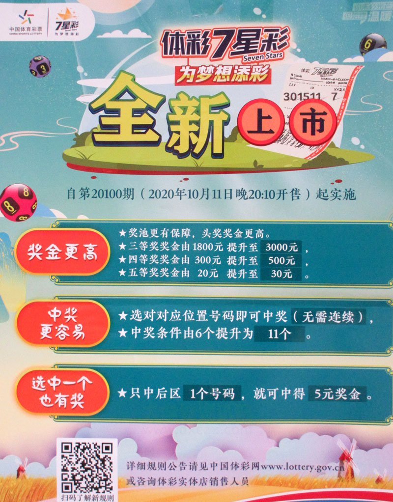 | 南亭大道南-中国体彩店 体彩7星彩全新上市 2020.10.11晚开售 奖金更高 | ||||||