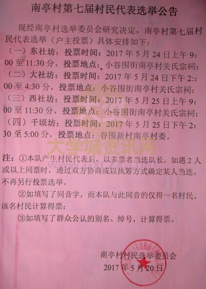 | 南亭村第七届村民代表选举公告 | ||||||