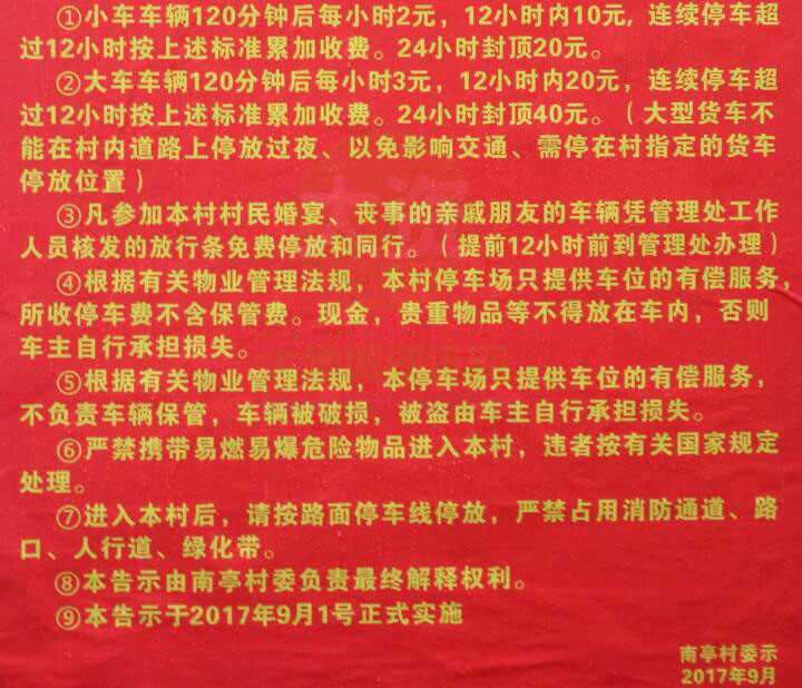 | 南亭村委关于9月份起村内停车免费卡月租卡临时卡的告示 | ||||||