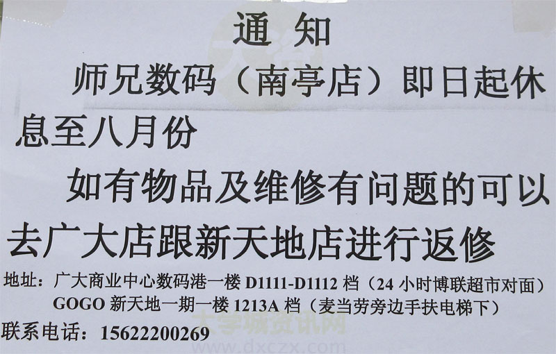 | 【通知】师兄数码(南亭店)即日起休息之八月份 | ||||||