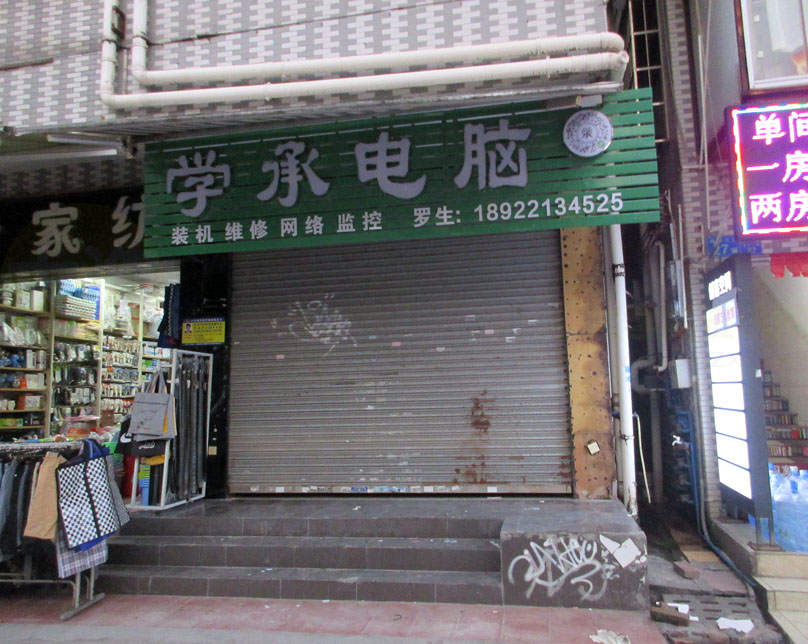 南亭大道中 一空铺在装修门面招牌,是学承电脑,做电脑笔记本维修配件方面的,是原先西社大街南的那里要搬过这边来了吗,搬到这里应该是更佳更合适了吧,毕竟是南亭村主干大道,又是中间位置,人流量可见度都不会比西社大街南差