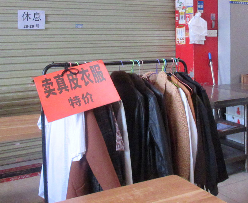 南商街二号楼北列中 雷州鸭子饭 今天好像继续休息喔 店门前好像还摆了个架卖衣服的