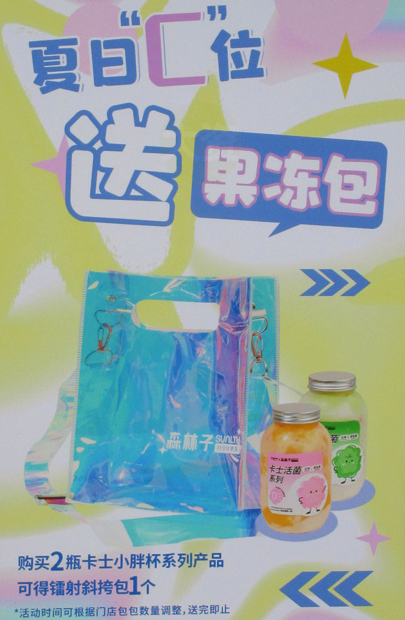 | 南商街八号楼东北临街 森林子茶饮店 夏日C位送果冻包 购买2瓶卡士小胖杯系列产品可得镭射斜挎包1个 | ||||||