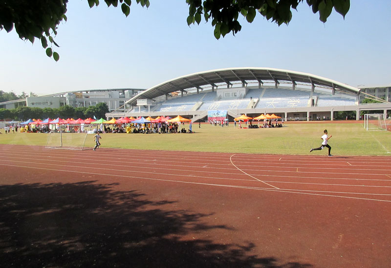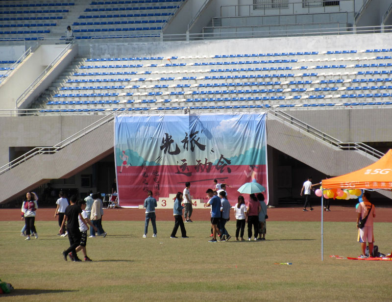 光电学院&旅游学院的光旅运动会正在教学区田径运动场进行
