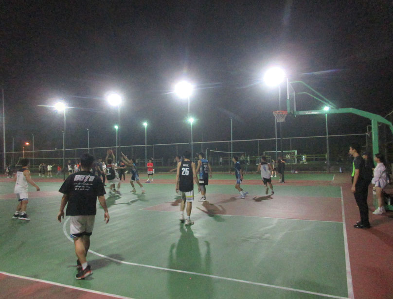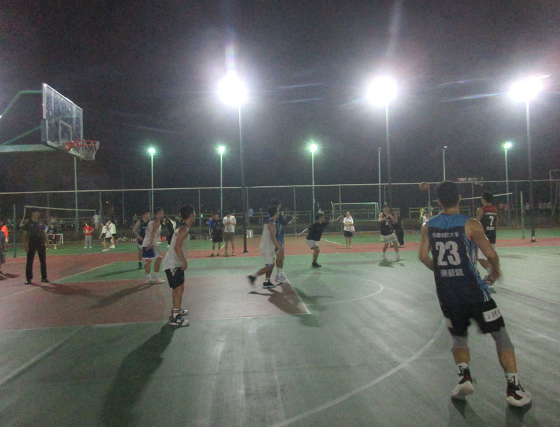 华师南生活区篮球场 华师甲组校队与体科体教研究生班队约的一场友谊赛切磋赛已经进行到尾声