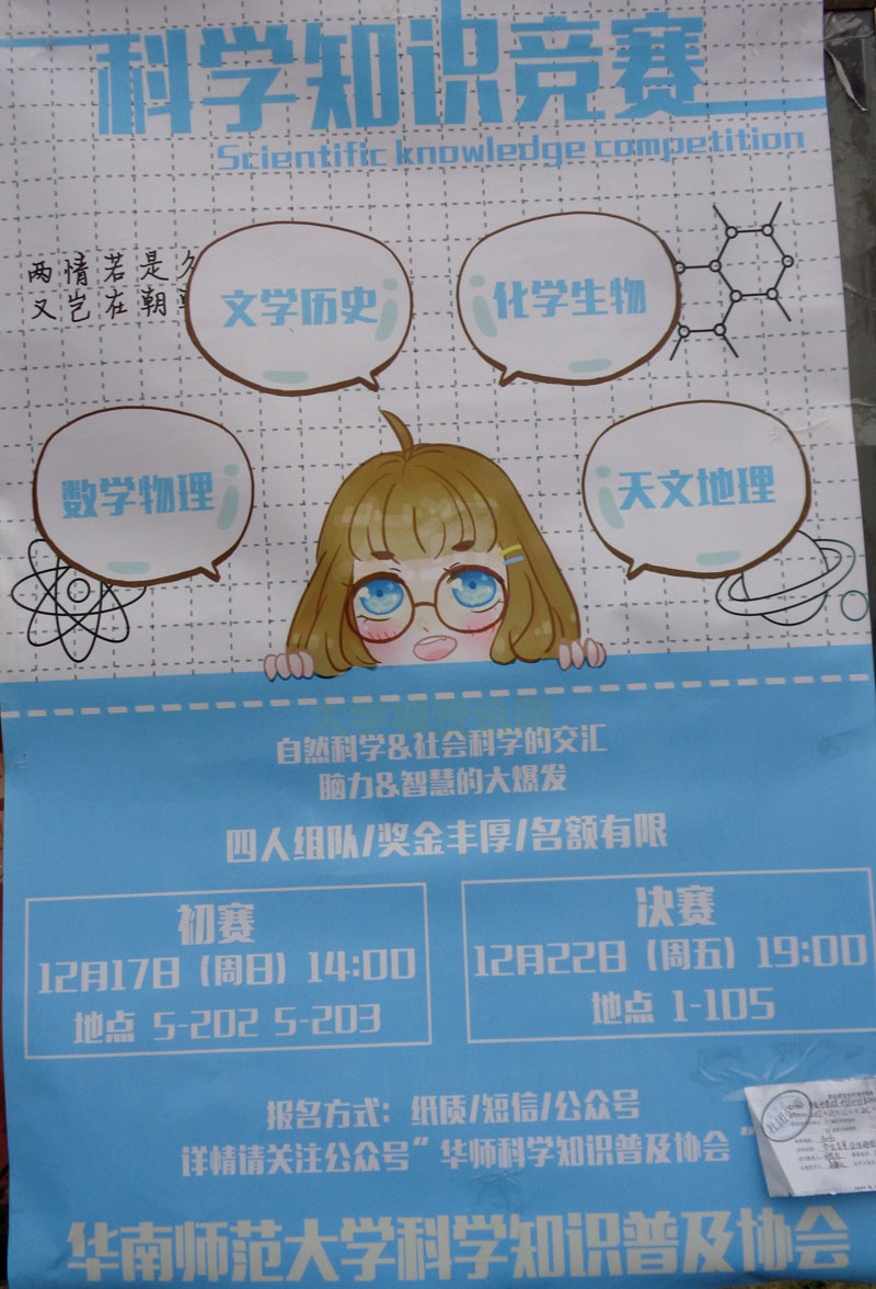 科学知识竞赛 初赛12月17日(周日)14:00 地点:教5-202 教5-203