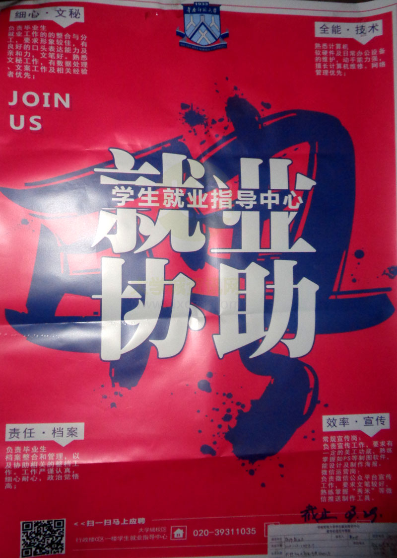 学生就业指导中心-就业协助岗聘:文秘、技术、档案、宣传职位