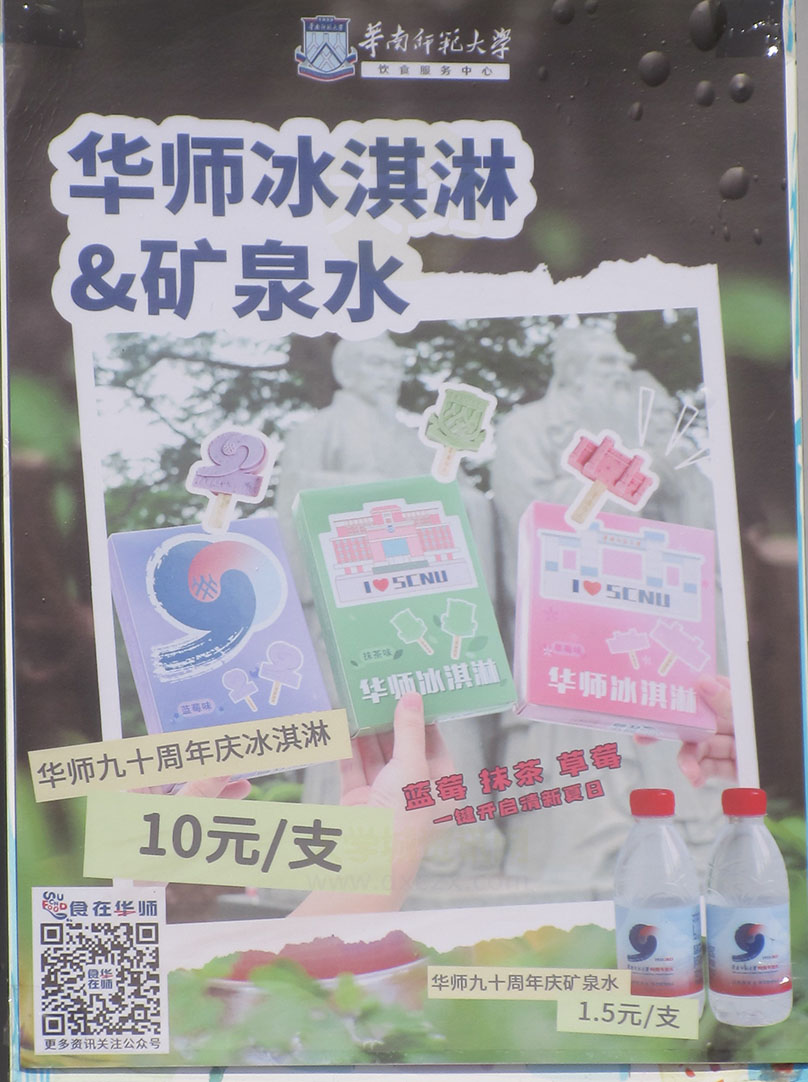 华师九十周年校庆冰淇淋10元1支 矿泉水1.5元1支