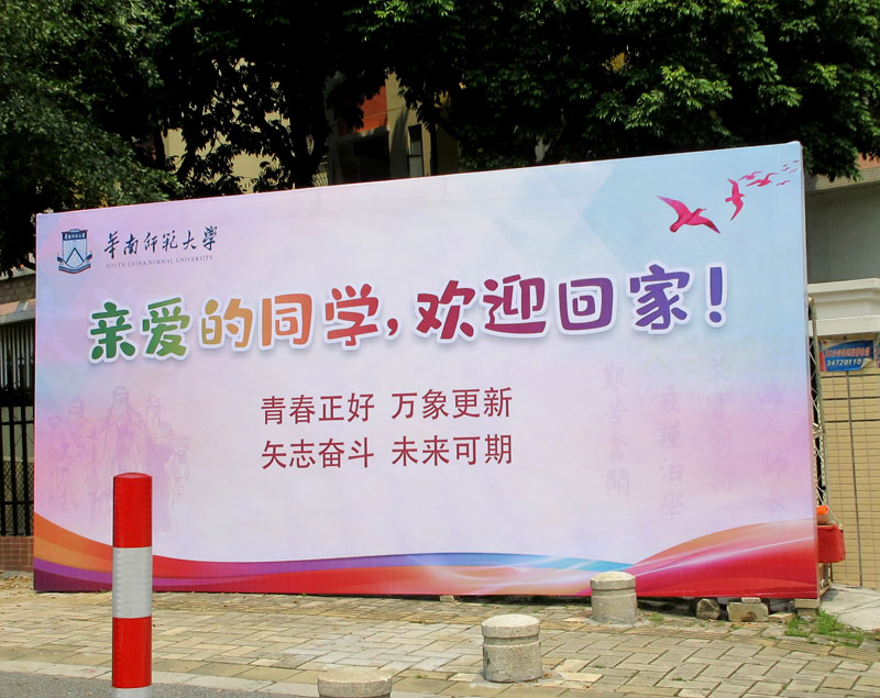 今天,看到有欢迎回家的巨幅海报背景墙了 真是久违了,自打读书以来,从未有过的阔别熟悉的校园200多天
