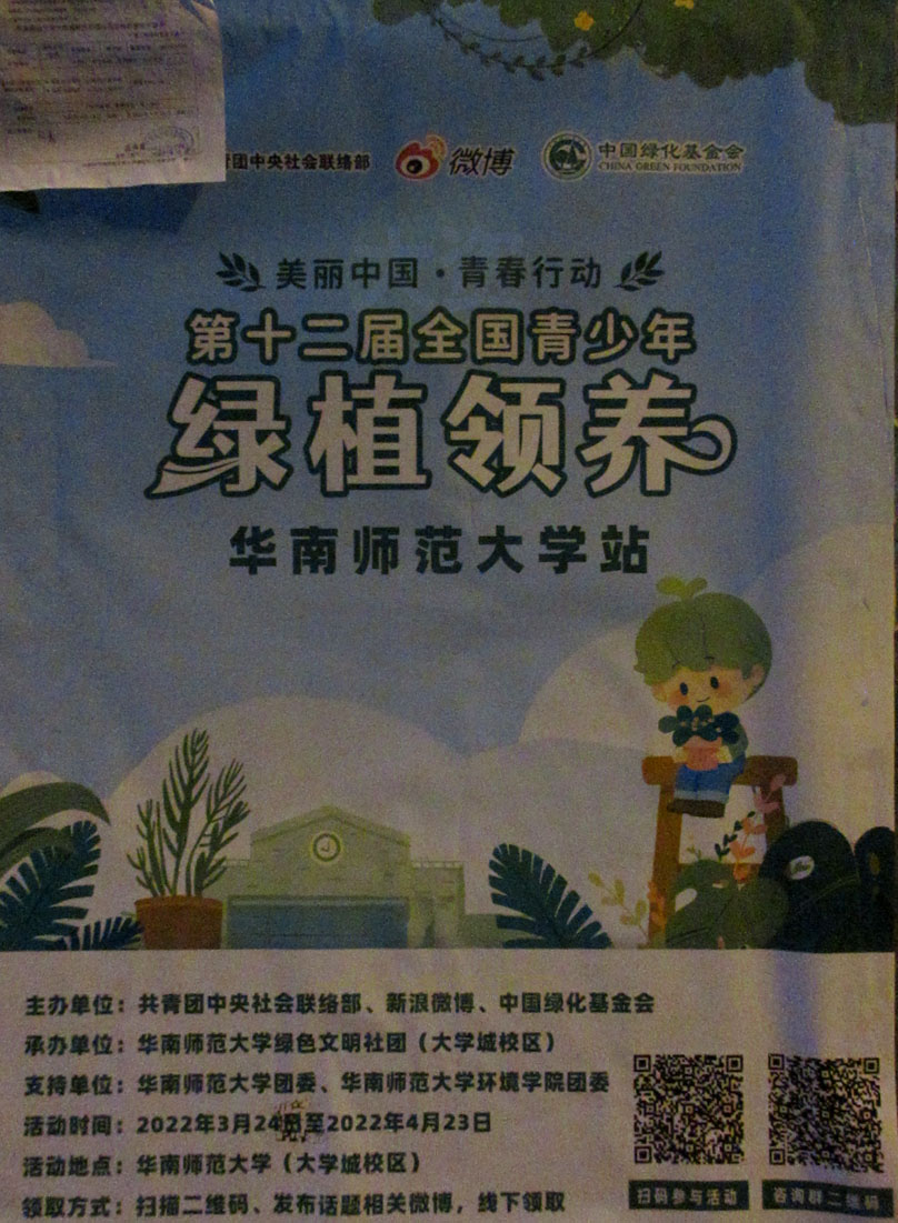美丽中国·青春行动 第十二届全国青少年绿植领养活动 华南师范大学站 时间2022.03.24-04.23